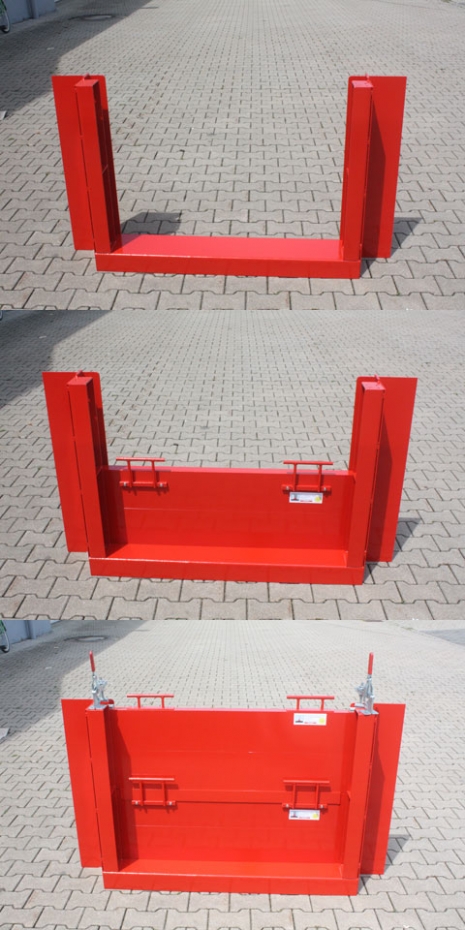Die Konstruktion ist in RAL 3000 lackiert. Herstellung und Einbau erfolgt nach WHG Richtlinien. TÜV-Süd geprüft.
